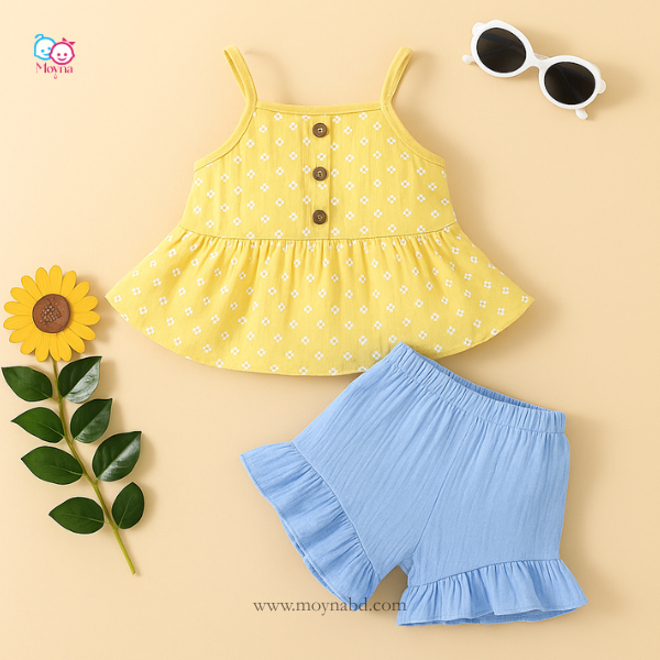 প্রোডাক্ট টাইপ: টু-পিস সেট — একটি স্লিভলেস পেপলাম টপ এবং ম্যাচিং শর্টস